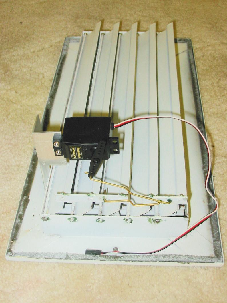 Generic way to modify the registers for computer control is pretty simple: throw in a generic $10 Futaba servo (S3003, to be exact), couple of pushrods, L-shaped aluminium piece, an extra screw and a nut, 15 minutes of your time - and you have yourself a damper.